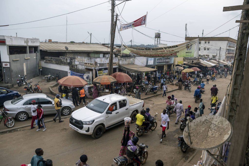 A médica Vivien Sil Mabouang, chefe dos serviços de saúde em um distrito de Camarões, dirige pelas estradas de chão
